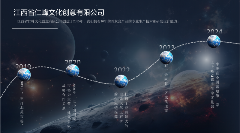 公司外行业的海潮中扬帆启航,2015年,成立江西省上上峰石材无限公司。谁也不曾料到,这家开初专注于保守墓碑石材加工的企业,富丽回身成为中国轻奢文化骨灰盒范畴的领航者。回顾往昔,2019 年,公司英怯地迈出了国际化的程序,将目光投向遥远的市场。正在目生的地盘上,他们积极摸索,勤奋让中国保守殡葬文化的奇特魅力正在大洋彼岸绽放荣耀。虽然面对着文化差别、市场法则不划一诸多挑和,但凭仗着对产物质量的逃乞降对文化内涵的深刻理解,他们逐步正在市场坐稳了脚跟。2020 年,上上峰公司灵敏察觉到国内市场潜力,成立了江西省仁峰文化创意无限公司,判断调整计谋标的目的,将营业沉心转回国内。这一年,他们成功成立起亚洲最大白系天然玉石矿供应链,为产物的高质量供给了保障。同时,通过取各地优良合做伙伴的慎密协做,正在短短时间内就笼盖了十余省市的代办署理商,建立起一个复杂而安定的发卖收集,让椟玉往生盒成为全国殡仪用品市场的轻奢领创品牌。而到了 2024 年,全国首家上上峰 AI 数字生命文化馆的落地,成为公司成长过程中的又一座里程碑。这一行动标记着品牌从纯真的产物制制范畴,成功迈向文化办事的广漠六合,实现了逾越式的升级,为殡葬行业的成长斥地出全新的模式。