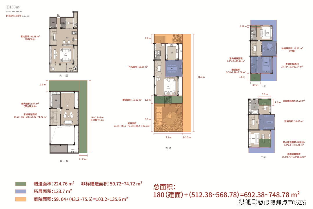 区域板块将来科技城2。0南湖新城,70年产权,总建建面积6万方,占地面积约3。6万方,共145套,一手准现房,中式合院,户型150-180方舒服4房3厅,总价约800万起,首套4成,地上三层半,地下两层,含两辆车库,层高一层3。6米,二三层3。2米,负一层3米,负二层2。9米。